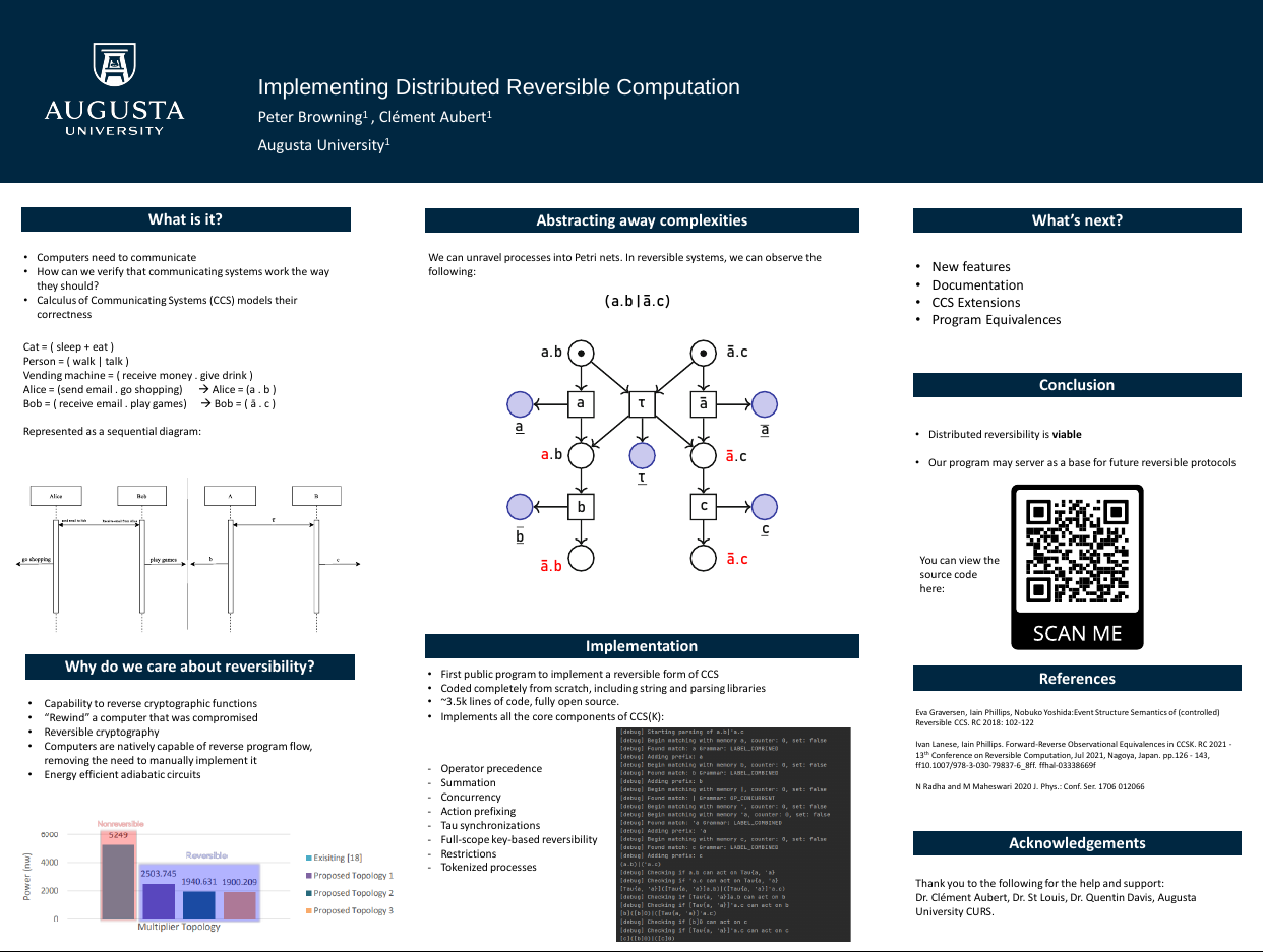 However, no definitive mathematical model of reversible and concurrent computation exists, and the existing attempts have not been implemented in computers: we offer to design a novel model surpassing the shortcomings of the first models, and to implement it so that it can become an experimental tools for researcher in our community.